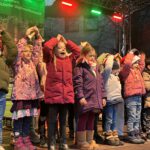 Die Kinder der Walklasse 1a präsentierten das Lied „Weihnachtslichter“ und brachten damit nicht nur die Lichter zum Strahlen. Die Weihnachtsmützen und Haarreifen mit Rentiergeweihen sorgten sofort für gute Laune. Mit dem Lied „Auf dem Weihnachtsmarkt“ erzählten die Kinder der Koalaklasse 1b, was man alles auf dem Weihnachtsmarkt entdecken kann.