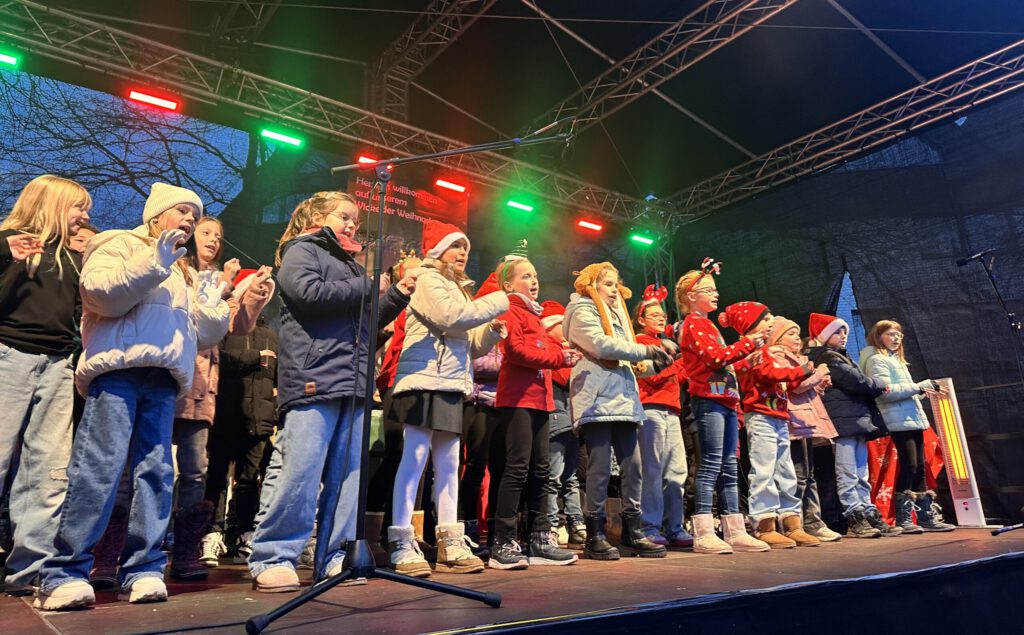 Am vergangenen Wochenende erstrahlte der Wickeder Marktplatz in besonderem Glanz. Die ersten und dritten Klassen unserer Schule trugen mit ihrem gelungenen Auftritt zur weihnachtlichen Stimmung bei. Die Schülerinnen und Schüler hatten sich lange auf diesen besonderen Moment vorbereitet und präsentierten ein stimmungsvolles Programm.