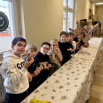 Im Anschluss führten die dritten Klassen die einstudierten Lieder auf. Während die Erdmännchenklasse 3b „Merry Christmas“ auf Deutsch vortrug, präsentierten die Hundeklasse 3a und die Fledermausklasse 3c gemeinsam die Lieder „Merry Christmas everyone“ und „Merry Christmas – Frohe Weihnacht“.